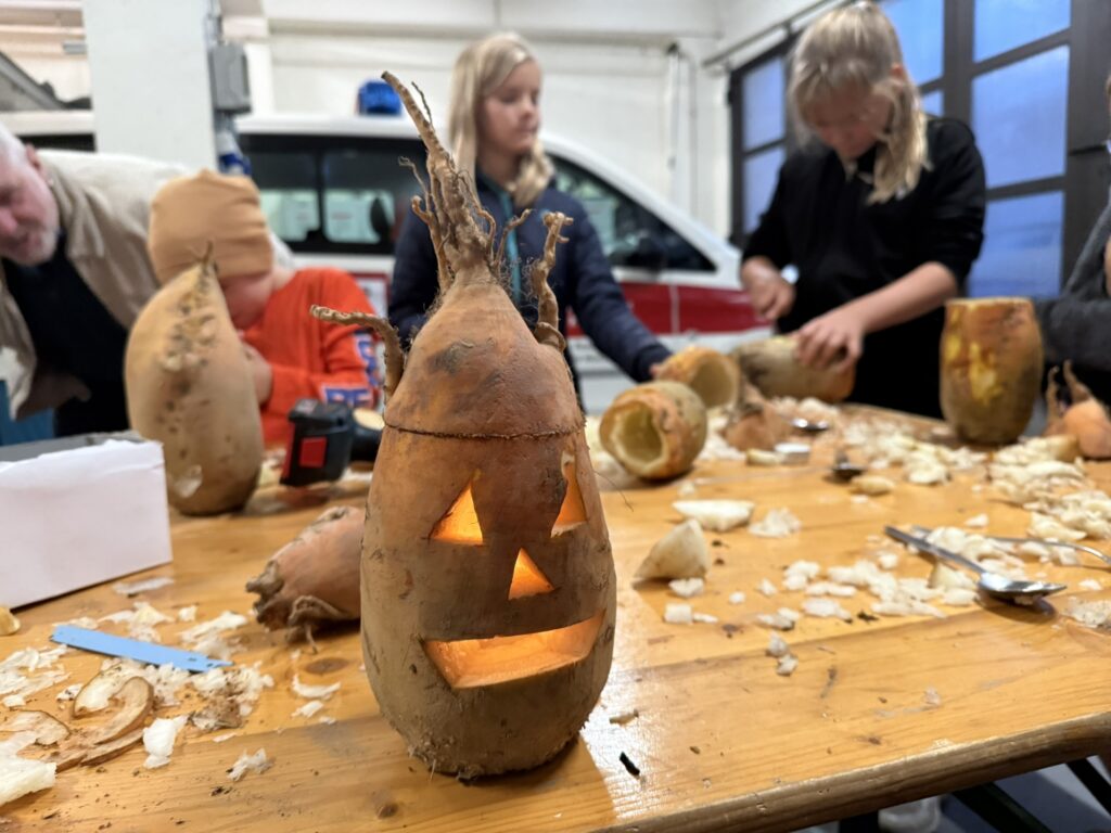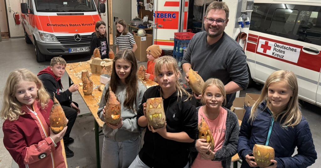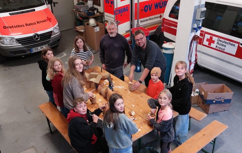 WÜRZBERG. In einer der letzten Jugendrotkreuz (JRK)-Gruppenstunden haben die Kinder einen „Rieweboutz“ geschnitzt – wie es in Würzberg Tradition war, bevor die Halloween-Kürbisse allgegenwärtig wurden.